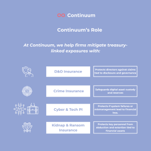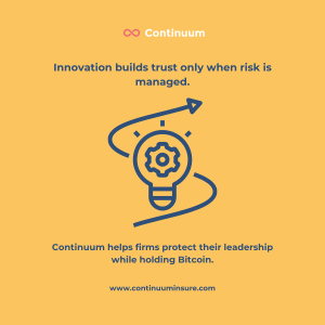 At Continuum, we help companies managing Bitcoin reserves protect their leadership and operations with tailored insurance solutions — from D&O cover to cyber and crime protection.